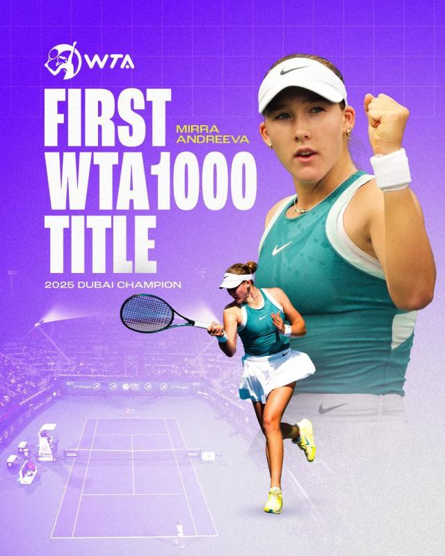 北京时间2月23日,2025WTA1000赛迪拜站决赛,来自俄罗斯的17岁小将安德列娃直落两盘以2-0战胜陶森斩获个人生涯首个1000赛女单冠军。值得一提的是,凭借着本站出色的表现,安德列娃打破两项历史纪录,成为女子网坛新的标杆性球员。